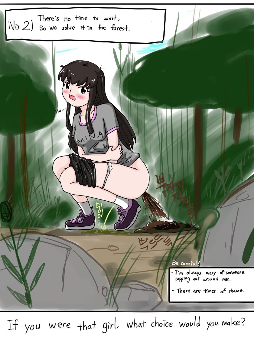 Girl pokes Pooping Diarrhea Outdoor