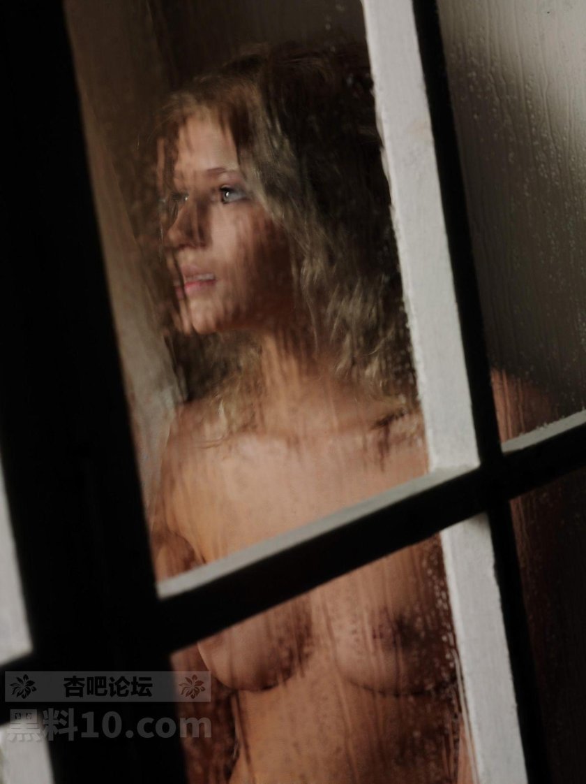 Naked woman in the window on contrary