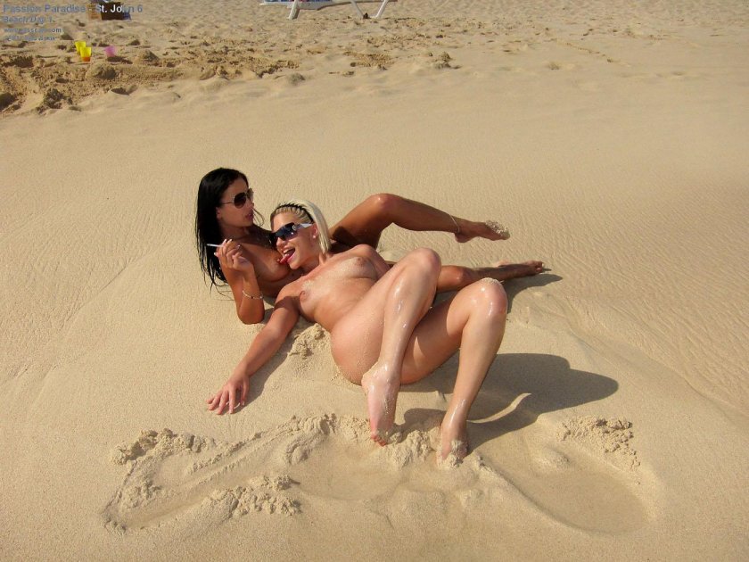 Naked girls on the beach in sand