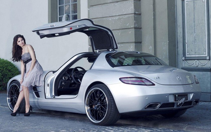 Mercedes SLS AMG and girl