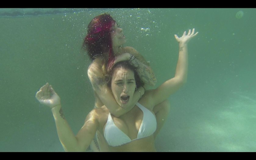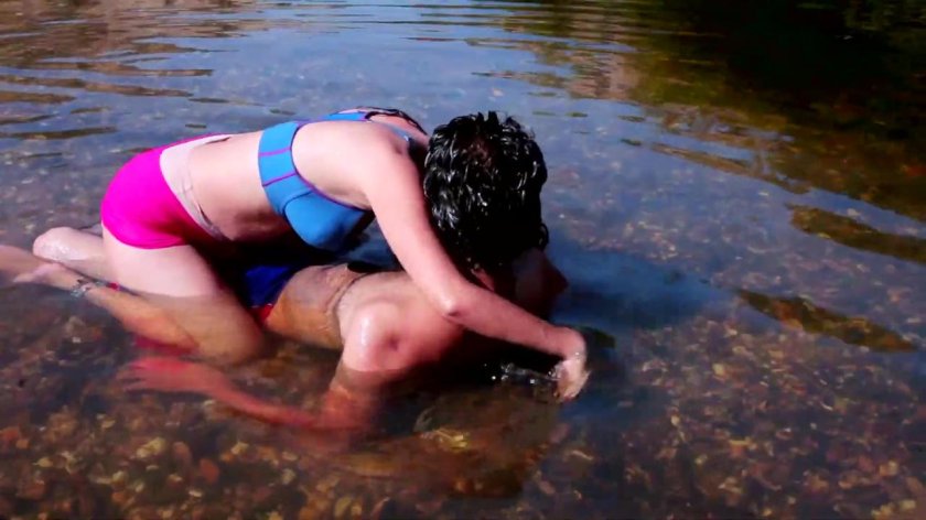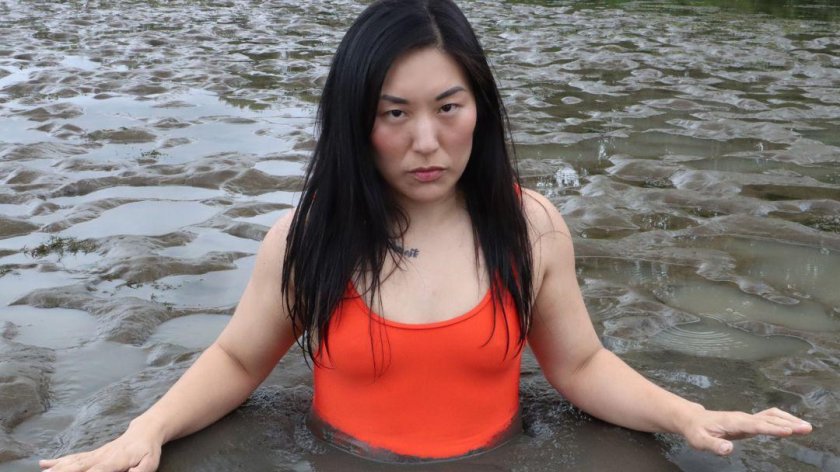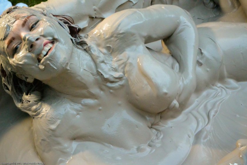 Women swim in the mud