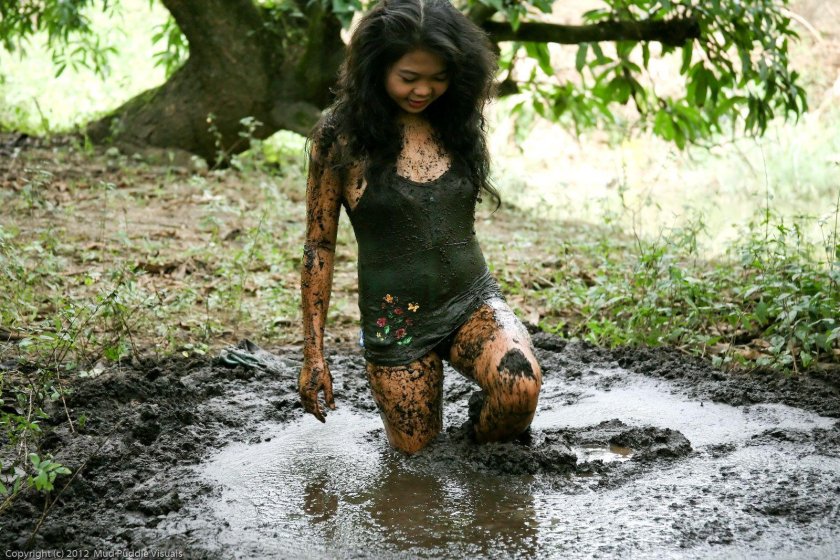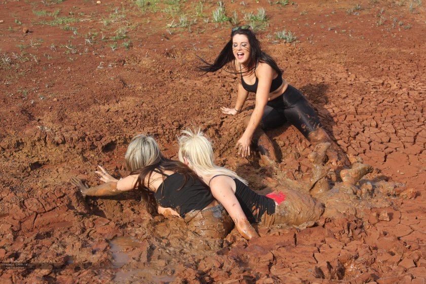 Beautiful girls in mud