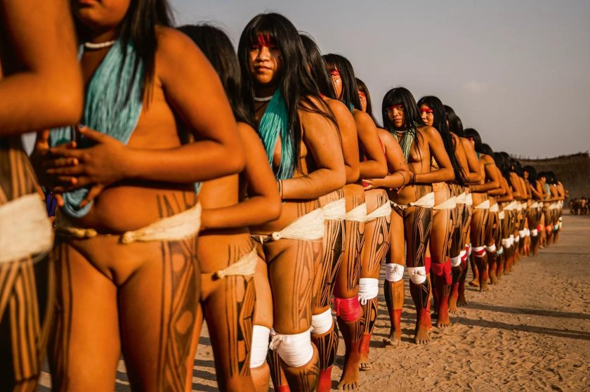 Naked Indians from the Xingu River Brazil