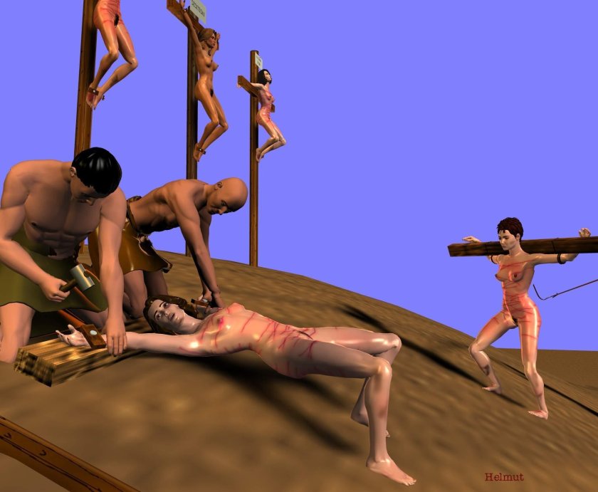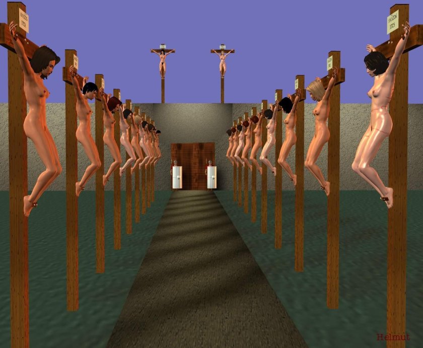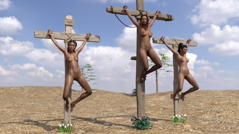 Naked women crucified 3 d