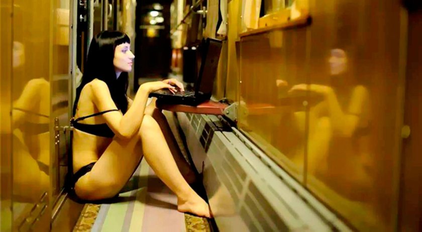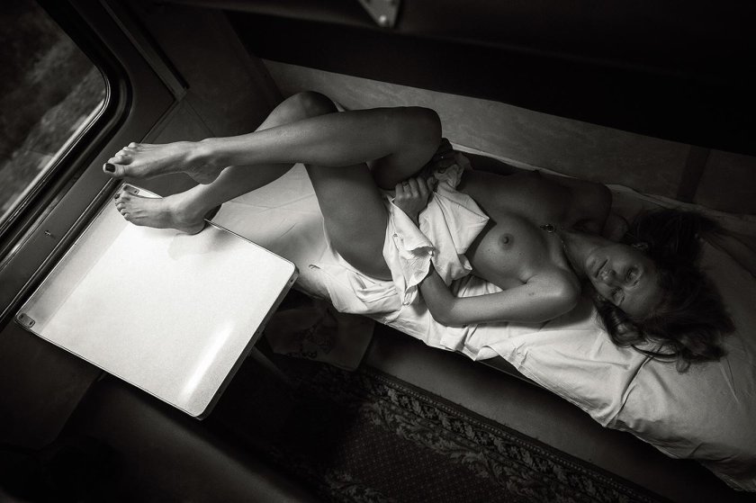 Photo: Girl undresses on the train