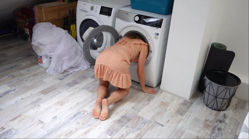 The half -sister was stuck in a washing machine porn