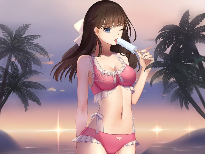 Anime girls beautiful in swimsuits
