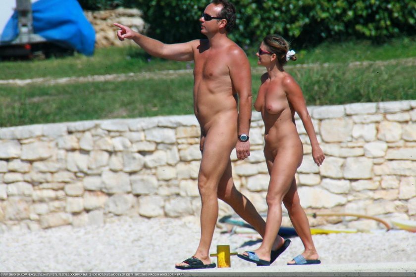 Nudists naked on the beach