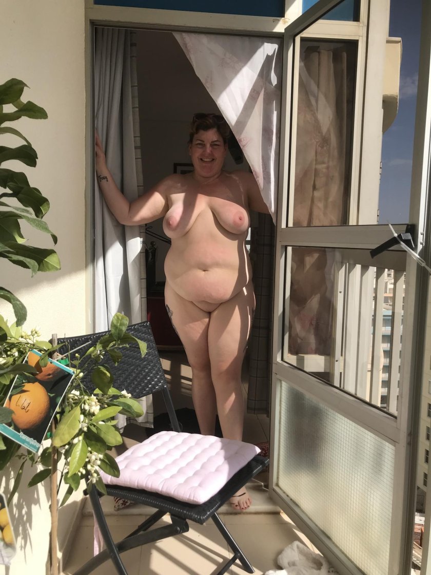 Joanna Bliss on the balcony naked