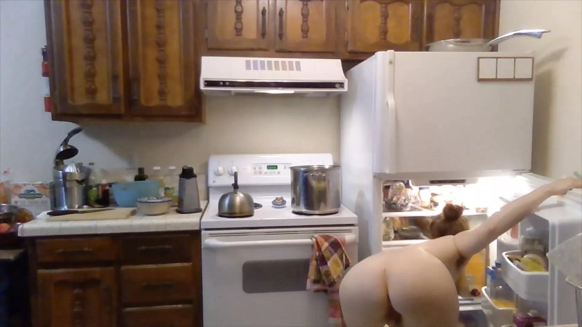 Sarah Jay in the kitchen naked cooks