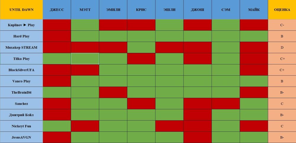 Until Dawn Character Traits