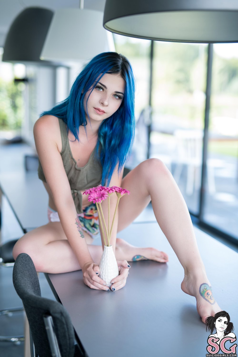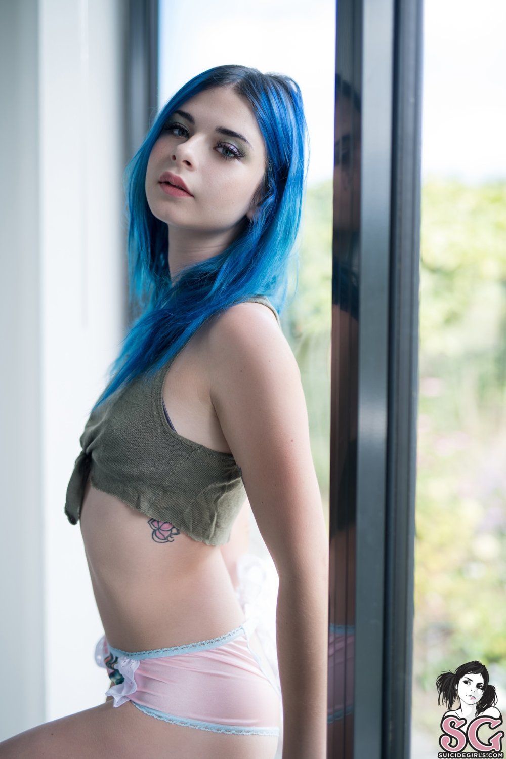 Girl with blue hair anus