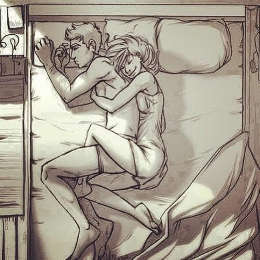 Hugs in bed drawing